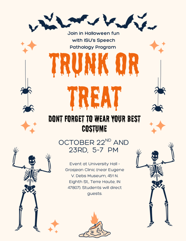 Come have a ghoulishly great time with Indiana State University’s SLP program at our annual Halloween event.