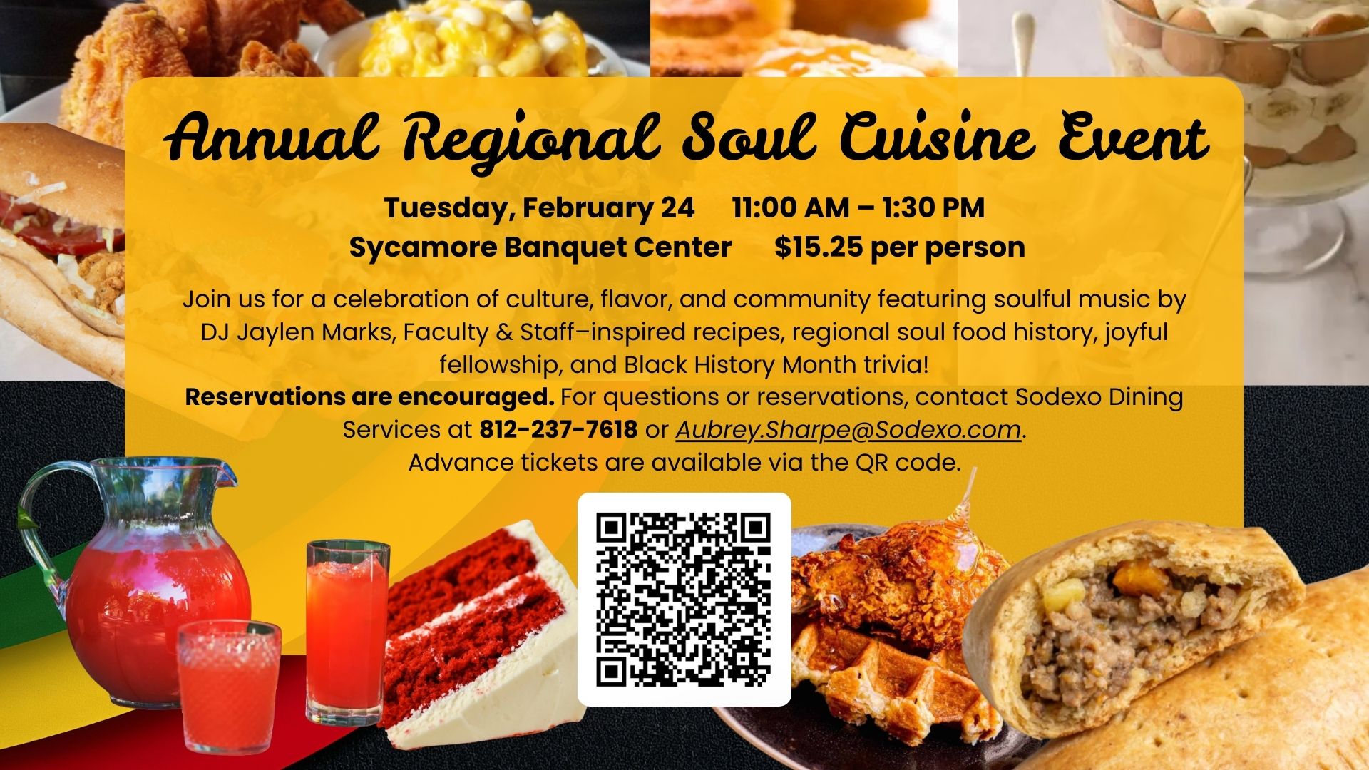 The Charles E. Brown Cultural Center, in collaboration with Sodexo, invites the campus community to the annual Regional Soul Cuisine celebration in honor of Black History Month. This event offers a welcoming, family-friendly atmosphere where guests can enjoy traditional soul food while celebrating culture, connection, and community.